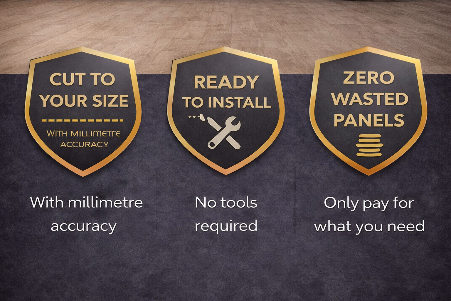 Made-to-measure acoustic wall panels, cut to fit your space perfectly. No tools, no cutting, and no stress about damaging the product - just a smooth, hassle-free install with no joiners or handymen needed, and a premium finish that transforms sound and style.